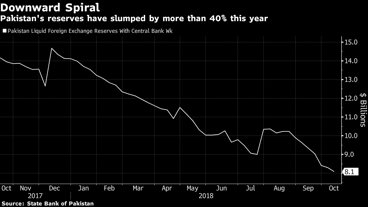 Since coming to power in July elections, the former national cricket captain has been seeking financial support from friendly countries including China, Saudi Arabia and the United Arab Emirates, with little success until now. Finance Minister Asad Umar has said Pakistan may need more than $12 billion to plug its finances as the current-account deficit widens and foreign-currency reserves plummet.