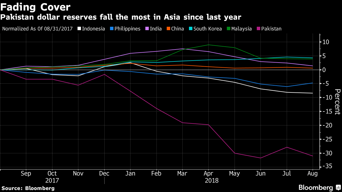 Foreign-currency reserves have plunged by a third to $9.9 billion in the past year, while the nation is running twin deficits of more than 5 percent of gross domestic product on both its current account and budget. Authorities have devalued the rupee four times since December.
