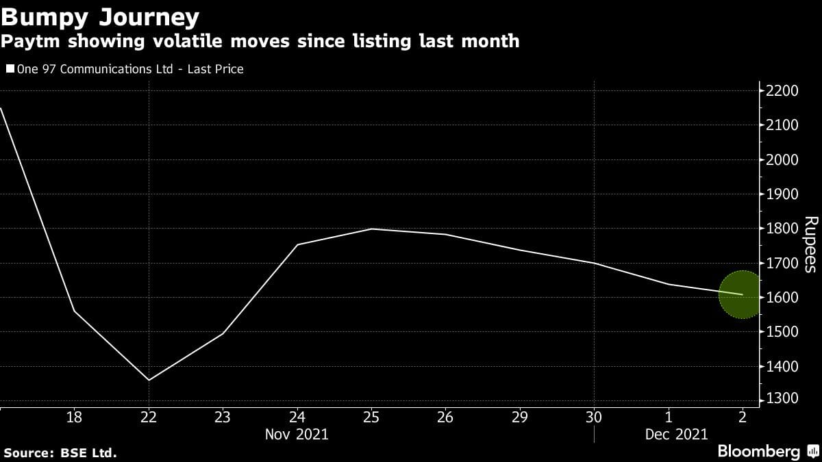 The brokerage has set a target price of 2,500 rupees ($33.4), which is 16% higher than the company’s issue price. Paytm dropped as much as 2.7% to 1,592 rupees on Thursday, a fifth day of declines, after plummeting 37% in the first two sessions of trading. JM Financial has a sell rating on the stock, while Macquarie has rated it as underperform.