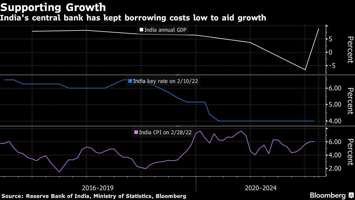 All economists surveyed by Bloomberg expect the Reserve Bank of India’s six-member monetary policy committee to hold the benchmark repurchase rate at 4% Friday, while just four out of 29 polled as of Thursday morning see a hike in the reverse repurchase rate — a tool the RBI uses to remove excess cash from lenders.