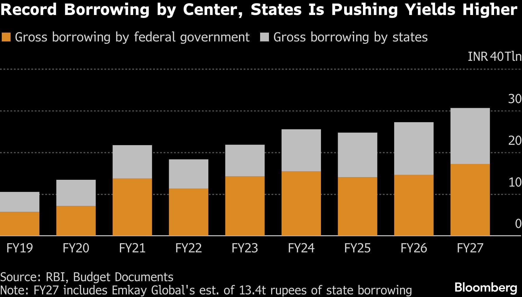 Bond markets were spooked, pushing up yields, after the government outlined plans to borrow 17.2 trillion rupees ($190 billion) in bonds in the next fiscal year, up 18% from this year.