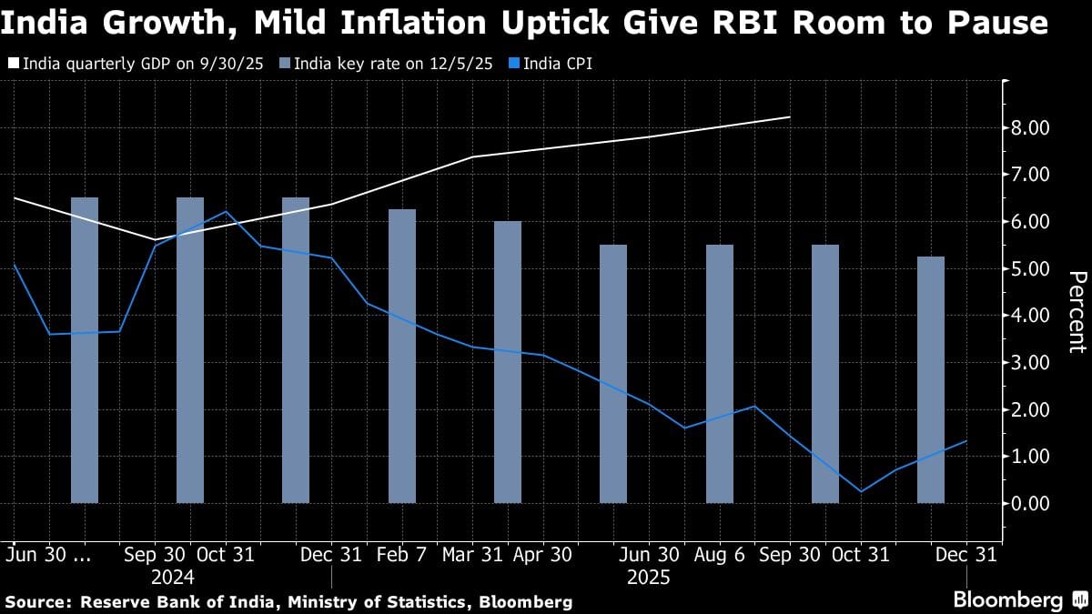The Reserve Bank of India may keep policy rates unchanged on Friday after a bumper week in which the government boosted spending in its budget and President Donald Trump announced a surprise trade deal, raising the outlook for economic growth.