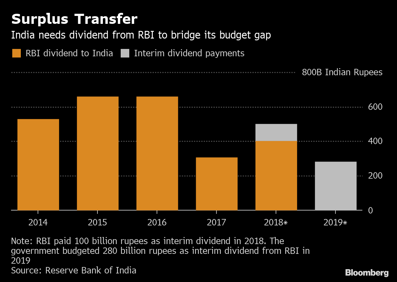 Any payout from the central bank will help partly bridge the government’s budget gap in the year ending March after it missed tax collection and asset sale targets. It could also be key to funding the Modi government’s income support program for farmers ahead of a general election due by May.