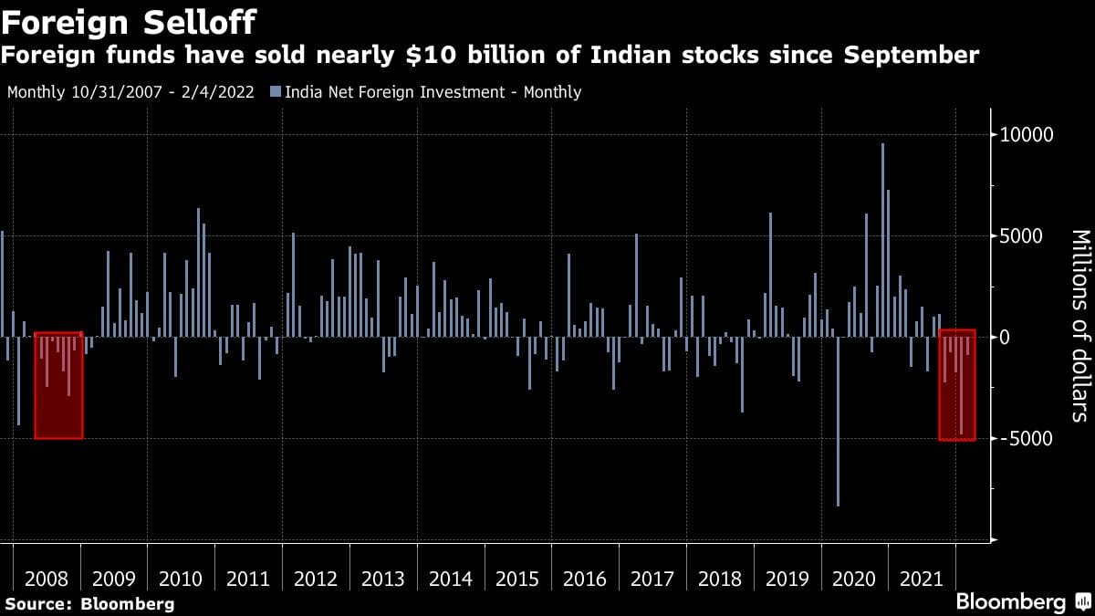 Foreigners have continued to sell Indian stocks, with their withdrawals totaling nearly $10 billion since the end of September. The outlfow comes as concerns have grown over valuations after a series of all-time highs for local indexes and the epic flop of the initial public offering for digital-payments firm Paytm.