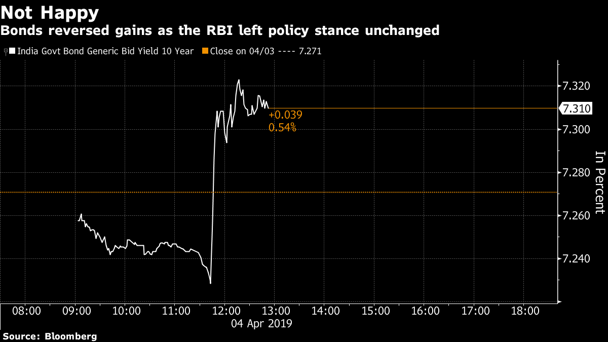 “The market got what was already priced in and at least a change in stance would have given clarity on further rate cuts,” said Vijay Sharma, the New-Delhi based executive vice president for fixed-income at PNB Gilts Ltd. The absence of liquidity-enhancing measures also dented sentiment, he said.