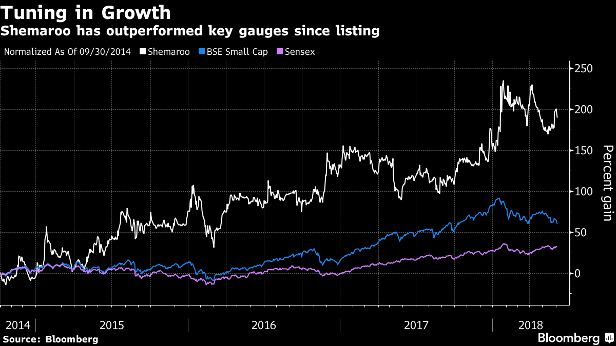 “Competition will be a key challenge for Shemaroo,” said V. Harini Priya, an analyst at Firstcall India Equity Advisors Pvt. Ltd in Hyderabad. Still, the company has “a huge opportunity,” says Priya, who has an overweight recommendation on the shares.