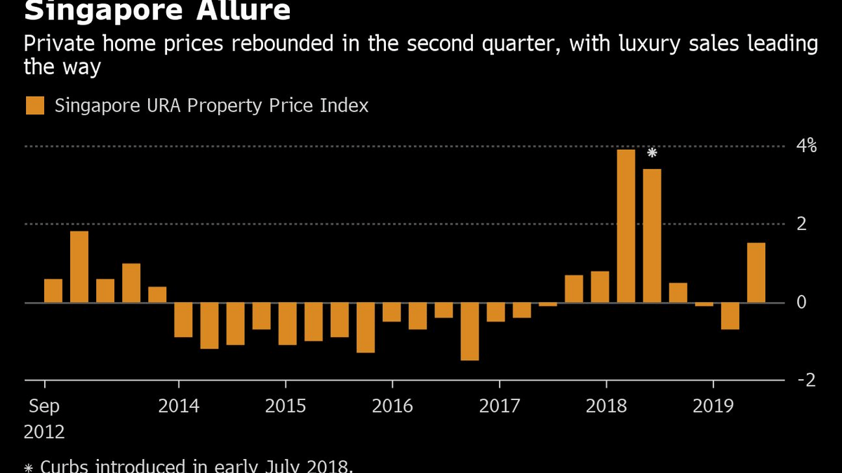 Prices are going in their favor, too. Data released last week from the Urban Redevelopment Authority showed private residential prices rose for the first time since the housing curbs were introduced. Dwelling values jumped 1.5% in the three months through June 30, spurred by luxury apartment sales.