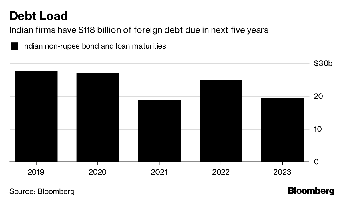 India Inc. overall is better off than several years ago, after more companies with foreign-currency debt bought protection against rupee declines, which otherwise would push up the cost to service those obligations. But there’s still a group of debtors that lack such safeguards, just as the rupee’s tumble worsens and a wall of debt comes due.