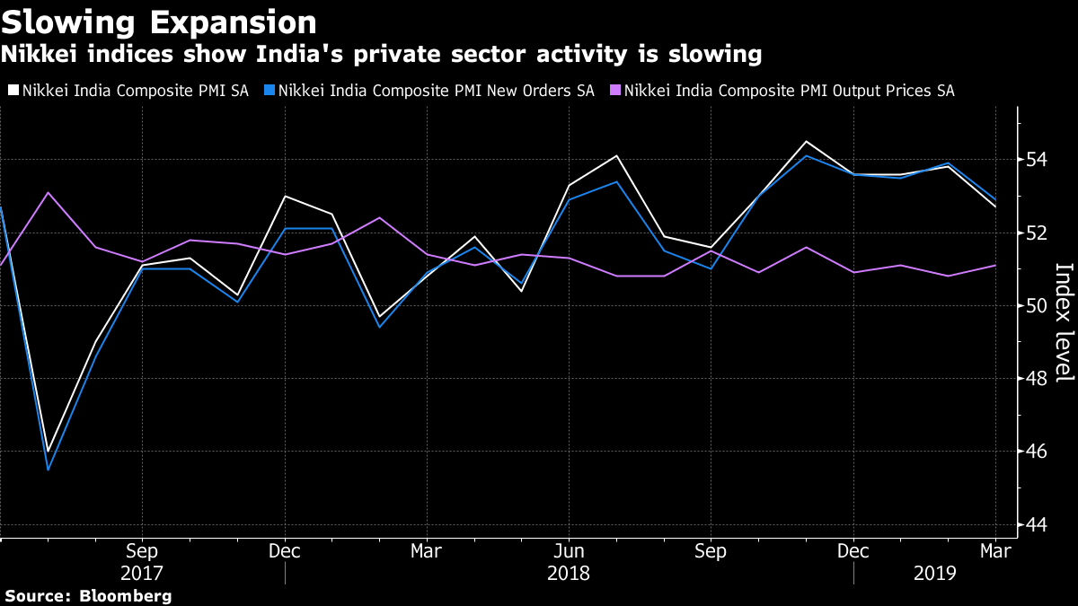 The seasonally adjusted Nikkei India Composite PMI Index fell to a six-month low of 52.7 in March. While a reading above 50 indicates an expansion, the latest number suggests moderation of growth in both manufacturing and services sectors. While job creation in services was at a six-month low, price pressures picked up a tad but was subdued overall.