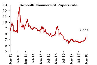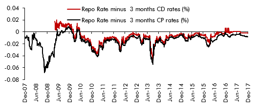 Technical note: Certificate of deposits (CDs) are short-term instruments issued by a bank to a person depositing money at a predetermined rate. Commercial papers (CPs) are short term, generally, unsecured promissory notes issued by companies at a predetermined rate.