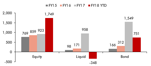 Exhibit 3: Mutual fund inflows into liquid and bond funds have been impacted