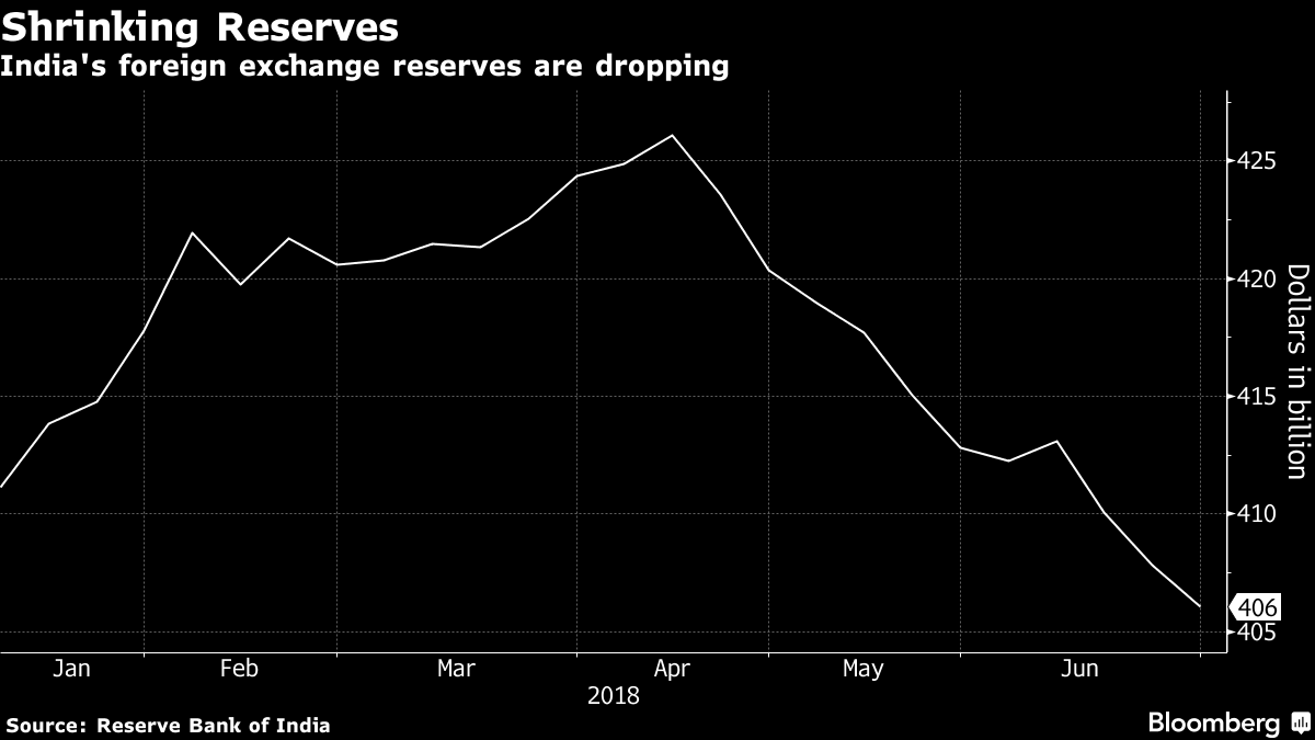 In the spot market, it intervened to the tune of more than $8 billion in April and May, central bank data show. That has seen India’s foreign exchange reserves fall to $406 billion — of which nearly $100 billion are in short-term debt, assets which the RBI considers are hot money and can leave the country anytime.