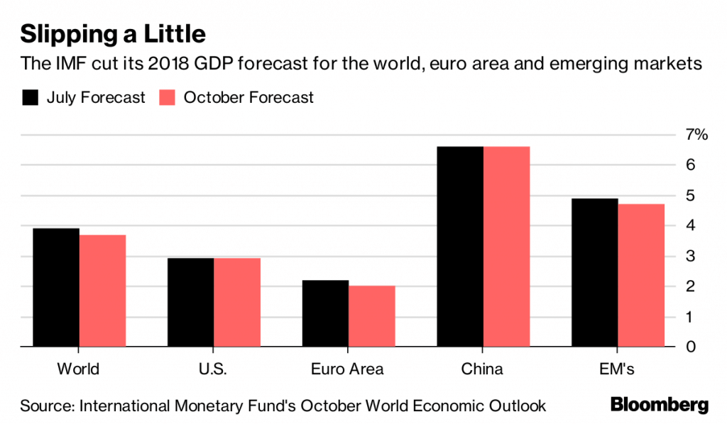 “Headwinds from higher oil prices, Fed interest rate increases and a stronger dollar, and the possibility of an escalation of trade tensions, don’t seem to be issues that will be resolved in three to five months,” Changyong Rhee, director of the Asia and Pacific department at the IMF, said in an interview. “Policy makers need to save ammunition.”