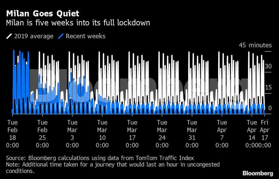 In northern Italy, where restrictions were introduced during the second half of February, peak-hour delays have been reduced to around 5 minutes from as much as 45 minutes on a one-hour journey.