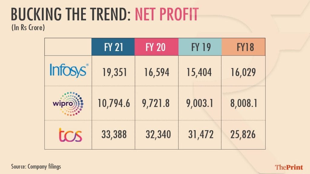 The company filings of the three biggest homegrown IT companies — Infosys, Tata Consultancy Services (TCS) and Wipro — show that their revenues, net profits and share prices increased in FY 2020-2021.