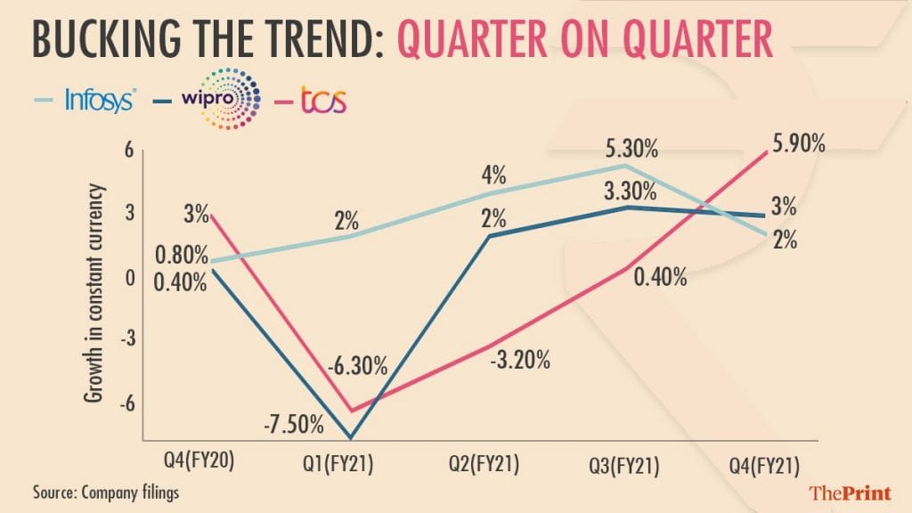 Quarterly and annual reports of IT companies indicate that their growth in constant currency largely fell during the first quarter (1 April to 30 June) of 2020-21, which includes the entire duration of the nationwide lockdown. By Q2, however, the industry was seeing a rise in demand.