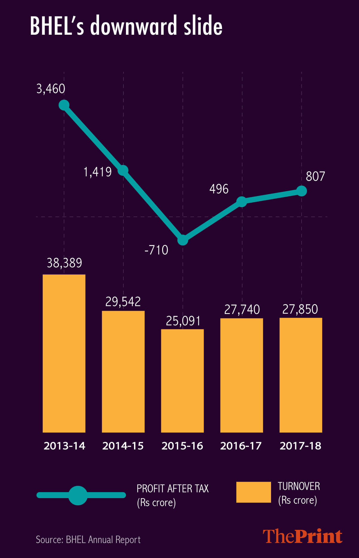 In the last four years alone, its turnover has fallen 27 per cent — to Rs 27,850 crore in 2017-18 from Rs 38,389 crore in 2013-14.