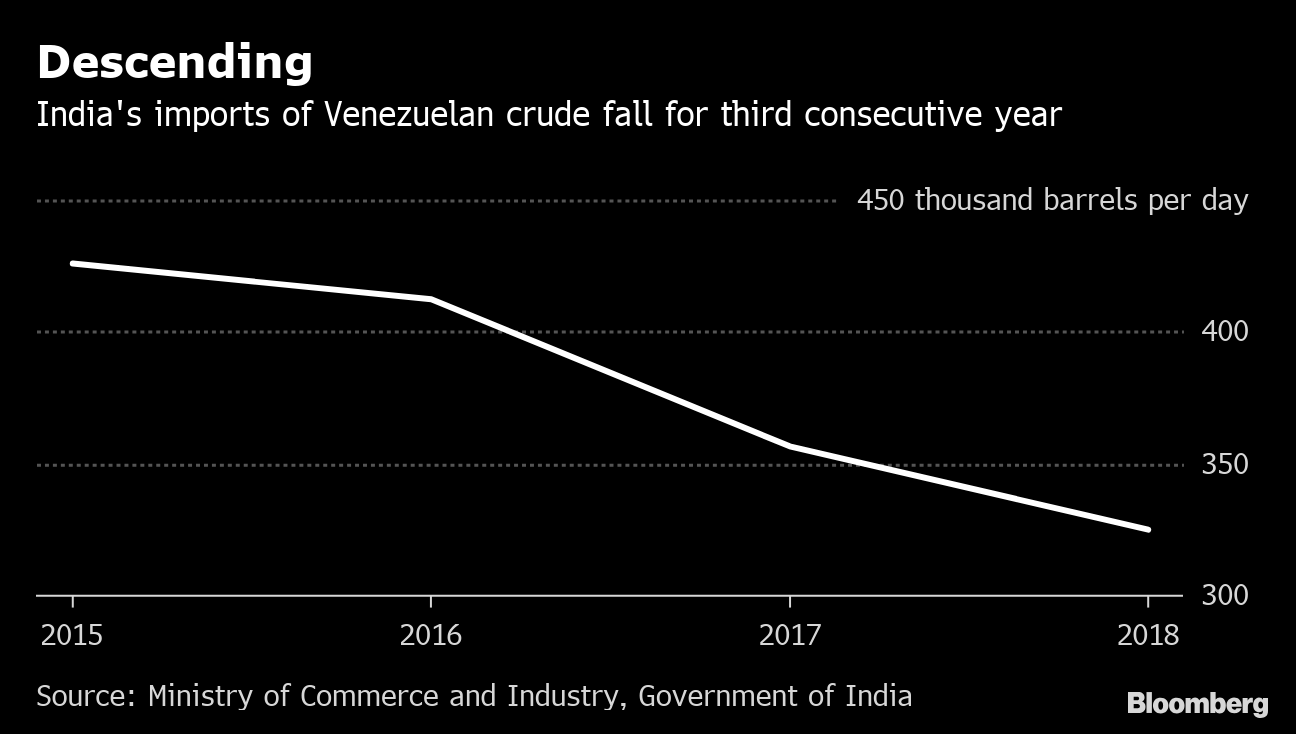 Reliance is India’s biggest private refiner, with a capacity of 1.36 million barrels a day. It imported about 270,000 barrels a day, or roughly 80 percent of India’s total oil imports from Venezuela in 2018, according to data compiled by Bloomberg.