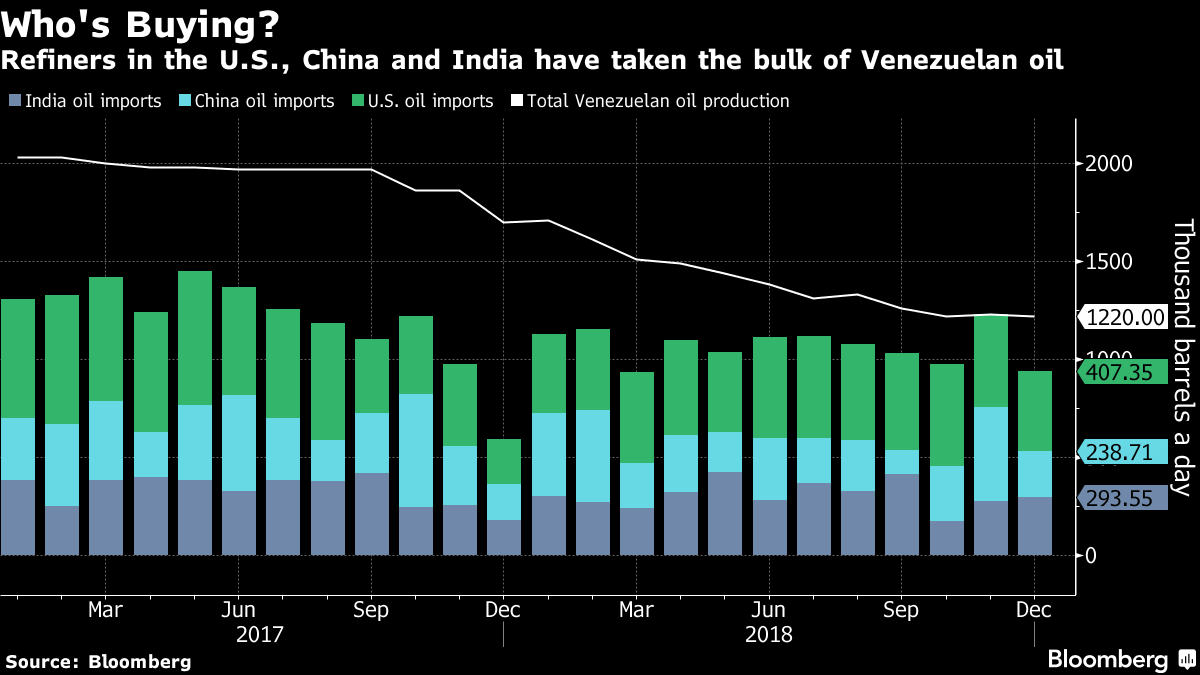 The opportunity to soak up the extra supplies from Venezuela at potentially cheap prices would be a boon for the Asian countries, where the governments are trying to support slowing economic growth. In China, Xi’s administration is trying to implement stimulus measures to shield the public from the effects of its ongoing trade war with the US Meanwhile, Modi’s party is being weighed down by populist pressures before national elections due by May.