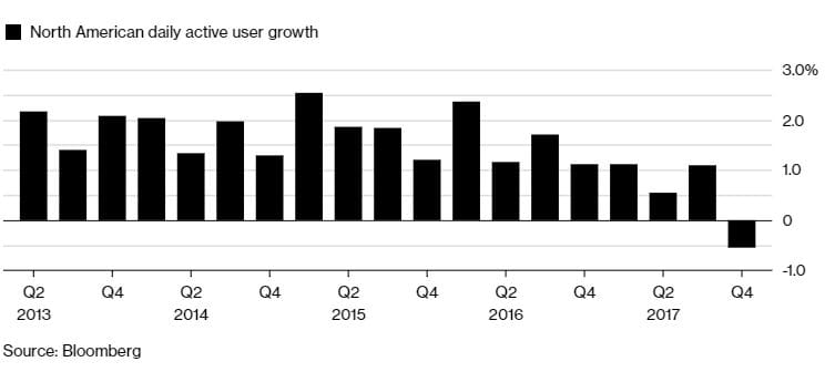 Facebook user growth in North America was negative for the first time ever last quarter: