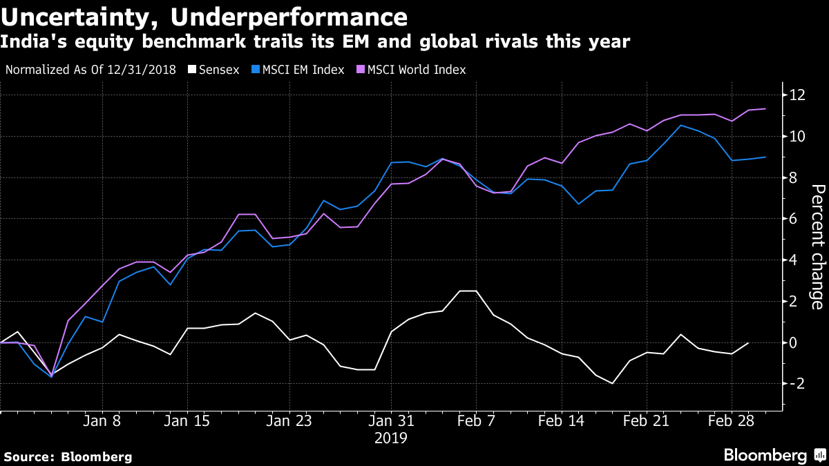 The benchmark Sensex index is little changed since the start of 2019, lagging the rally in global markets. In addition to the political uncertainty, markets have been jolted recently by India’s military skirmishes with neighboring Pakistan. Tata AIA expects the tension to add to market volatility amid the elections as well as ongoing China-U.S. trade talks and rising oil prices.