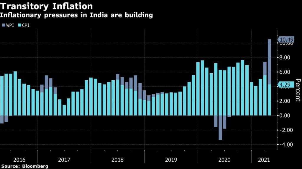 While the wholesale price print due later Monday will probably make for another grim reading, retail inflation is seen hovering above the 5% mark for the third out of five months this year. Monetary policy makers ignored the acceleration and earlier this month retained an “accommodative” stance for as long as needed to restore growth on a durable basis.