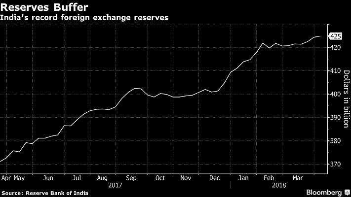 India has seen large foreign exchange inflows over the past few years given the relatively high yields on its assets and a pick up in foreign direct investment. That’s enabled the Reserve Bank of India to build reserves to more than $420 billion.