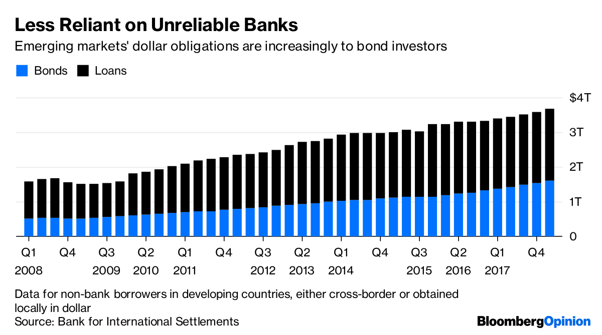 To see why, start with the strong dollar. At first glance it appears to be an outsized threat. At $3.7 trillion, the dollar debt of non-bank borrowers in emerging markets is about $2 trillion more than its pre-Lehman high.