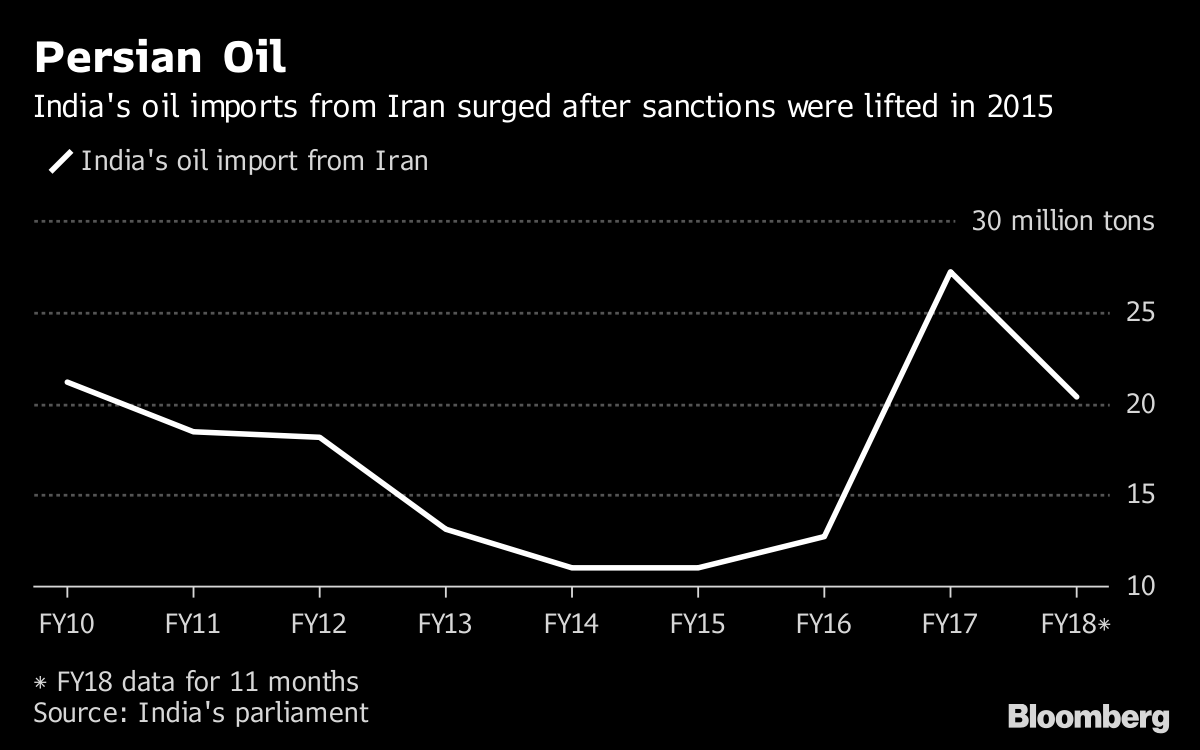 India’s government has so far been sending mixed signals about its stance on Iranian imports. While the country said it plans to seek exemptions from the sanctions and is also looking at alternate payment mechanisms to enable it to continue purchases from the Persian Gulf state, the government has also asked refiners to brace for all eventualities, including zero imports.