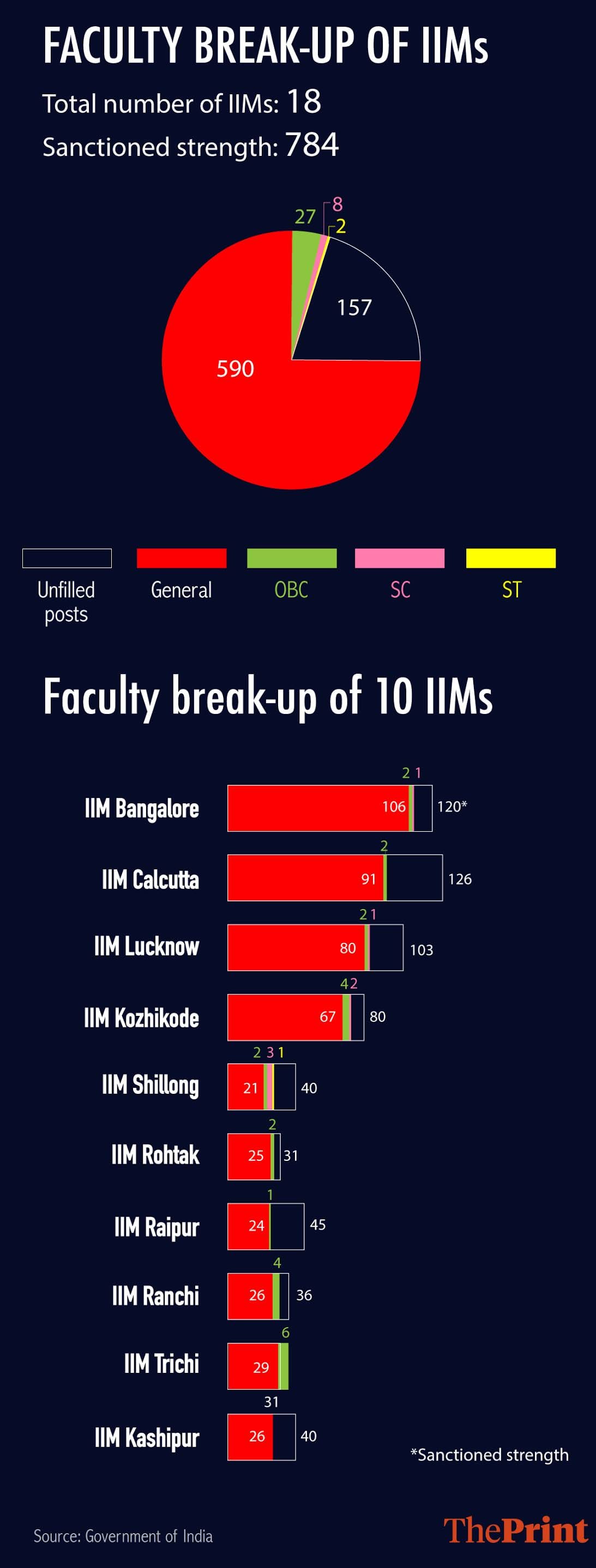 Congress MP Rajeev Gowda, who has taught at IIM Bangalore and is aware of the nuances of faculty hiring, told ThePrint: “IIMs do not practice discrimination, however, there is a pipeline challenge. We need more people from the SC, ST and OBC category to qualify for the job.”