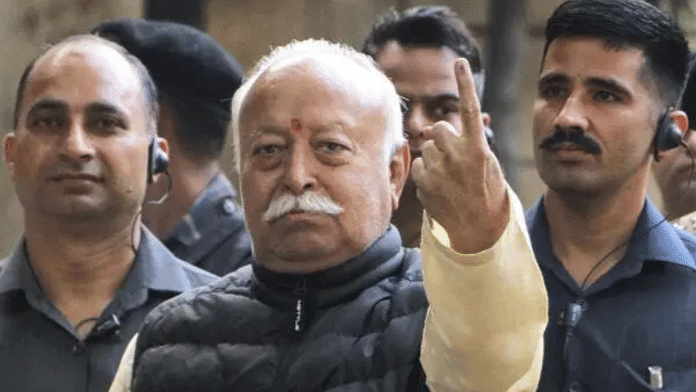 RSS head Bhagwat exercised his franchise at a polling booth in Nagpur’s Mahal area soon after the voting began at 7 am.