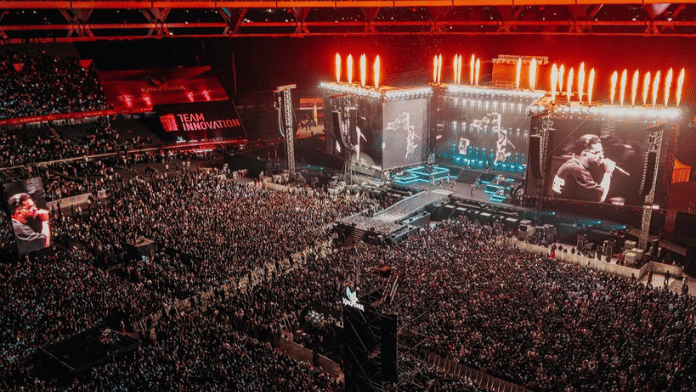 The production featured a towering 50-foot main stage, an extended C-Stage, IMAX-style LED visuals, along with synchronised drones, fire props, giant sunflowers, flags, and flares.