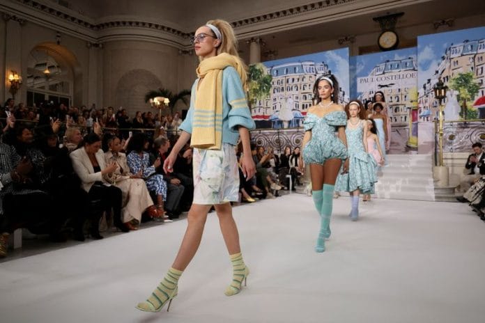 LONDON (Reuters) – Irish designer Paul Costelloe took fashionistas to Paris for his spring collection at London Fashion Week on Friday, as the British capital picked up the catwalk season baton.