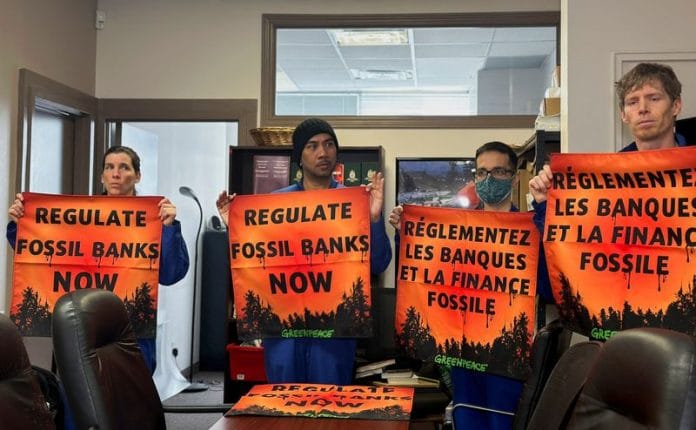 TORONTO (Reuters) – Climate activists barged into Canadian Finance Minister Chrystia Freeland’s Toronto office on Thursday demanding the government announce climate-related regulation for banks in its 2024 budget.