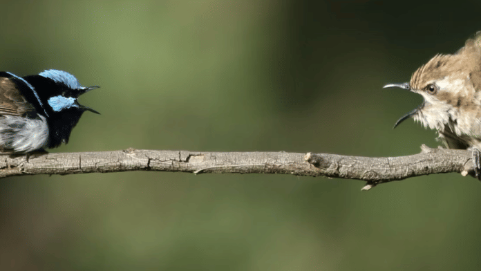 For example, this is a superb fairy-wren responding to a shining bronze-cuckoo in Australia.