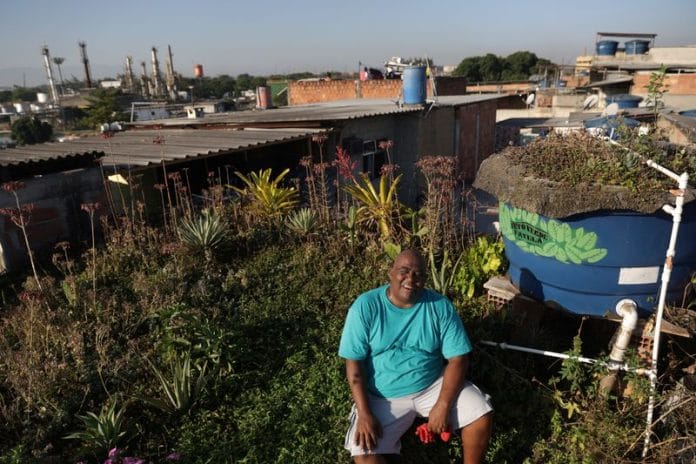 RIO DE JANEIRO (Reuters) – Luis Cassiano climbs a ladder and gently places small bundles of plants on a tin rooftop in a poor Rio de Janeiro neighborhood.