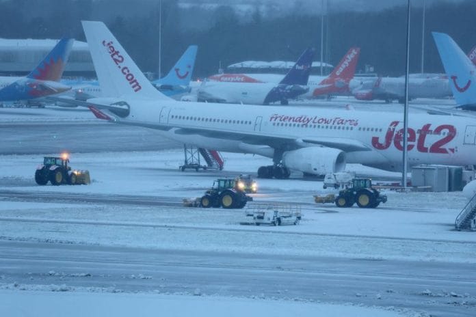 Early on Monday, Manchester Airport temporarily closed its runways due to heavy snow, following a similar move by Liverpool Airport on Sunday.