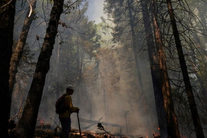 GEORGETOWN, California (Reuters) – The prescribed burn begins on a California hill with a drip torch to light brush, needles and fallen branches, the flames spreading out on the forest floor far below the tree canopy.
