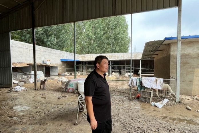 BEIJING (Reuters) – Chinese farmer Zhou Lu had raised hundreds of sheep for four years. Now they lie, belly up or on their sides, dead and bloated after drowning in a flood brought on by a torrential typhoon.