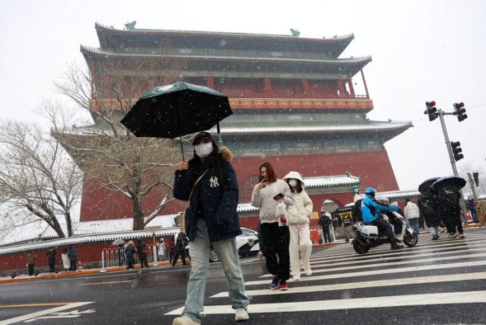 BEIJING (Reuters) – Gripping cold weather swept across major sections of China on Thursday while many areas in the south will see sharp drops in temperatures over the next few days, Chinese weather forecasters predicted.