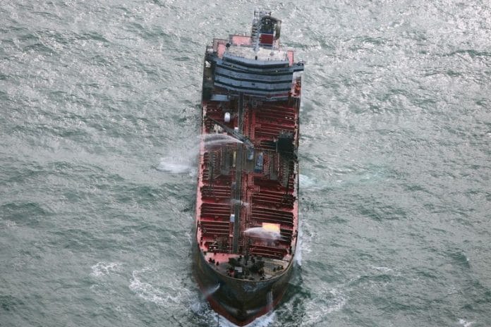 The tanker, Stena Immaculate, which carries jet fuel for the U.S. military, was at anchor on Monday when it was struck by the smaller Solong, causing huge fires and explosions, releasing fuel into the sea, and potentially posing a danger to wildlife.