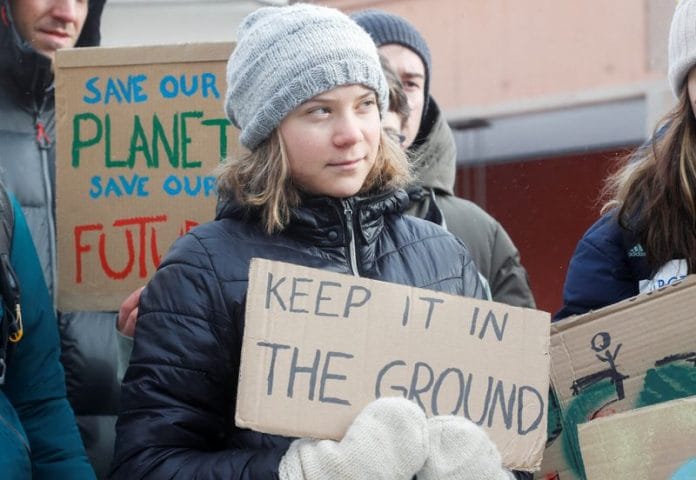 The protesters chanted “What do we want? Climate justice. When do we want it? Now” and “Fossil fuels have got to go”, while Thunberg held up a sign saying “Keep it in the ground”.