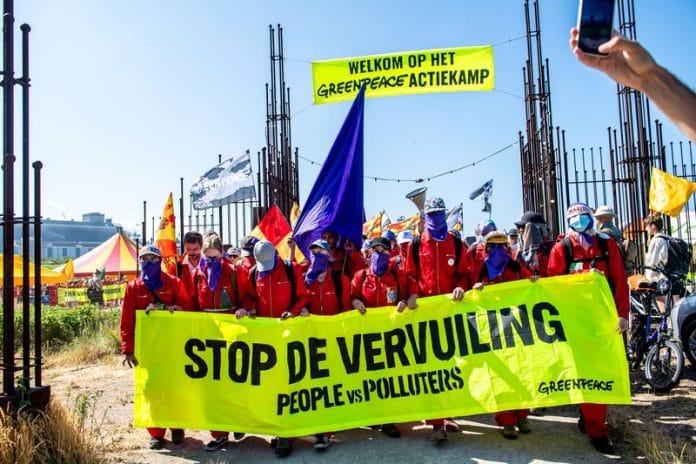 AMSTERDAM (Reuters) – Hundreds of environmental activists wearing red jumpsuits marched with flags and banners on Saturday into the grounds of Tata Steel’s plant in the Dutch city of Ijmuiden to protest over air and soil pollution in the surrounding area.