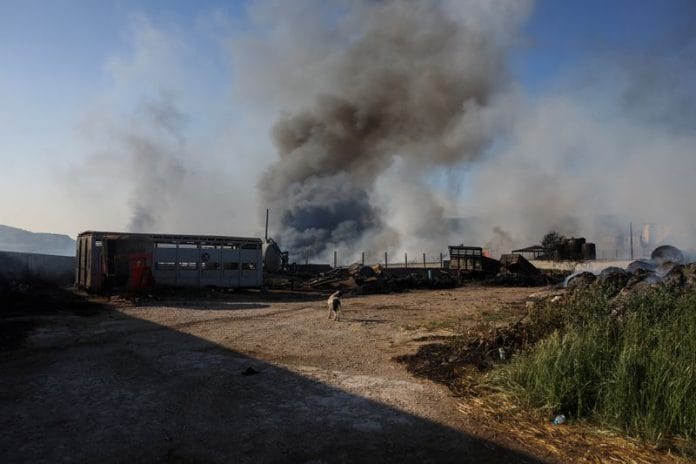 VOLOS, Greece (Reuters) – Firefighters in Greece battled flames burning for the 10th day on the island of Rhodes, while new blazes erupted on the mainland that destroyed farms and factories overnight and left farmers rushing to evacuate their animals.