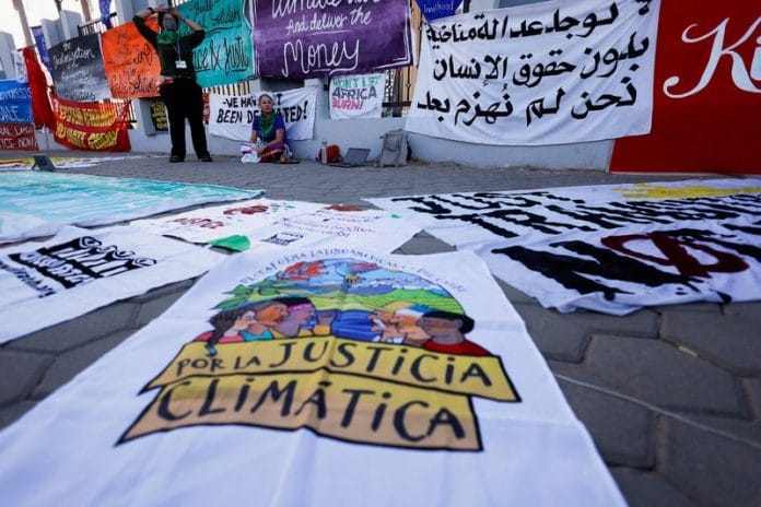 Gathered outside the security gates, where all delegates pass through, Fijian activist Ulaisi Tuikoro chanted: “From Sharm el-Sheikh to New York. Climate justice is what we want.”