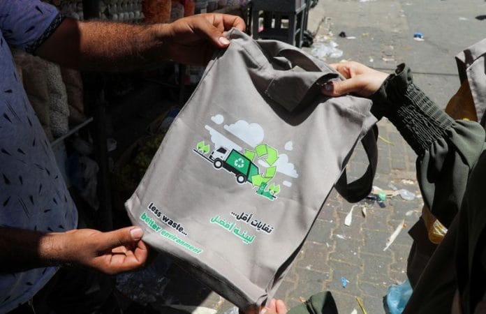GAZA (Reuters) – The “Replace It” campaign in Gaza is distributing bags made of cloth to encourage residents avoid using plastic totes, which can end up in the sea or littering the streets.