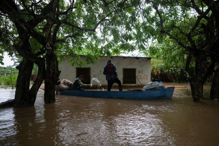 TELA, Honduras (Reuters) – Wading through waist-deep water, residents along the northern coast of Honduras trudged through the streets on Friday carrying their belongings and pets, as heavy rains from Tropical Storm Sara caused widespread flooding across the area.