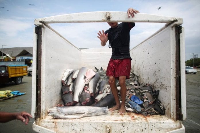 Many arrive in the border town of Tumbes in Peru, where there is a market for shark meat and fins.