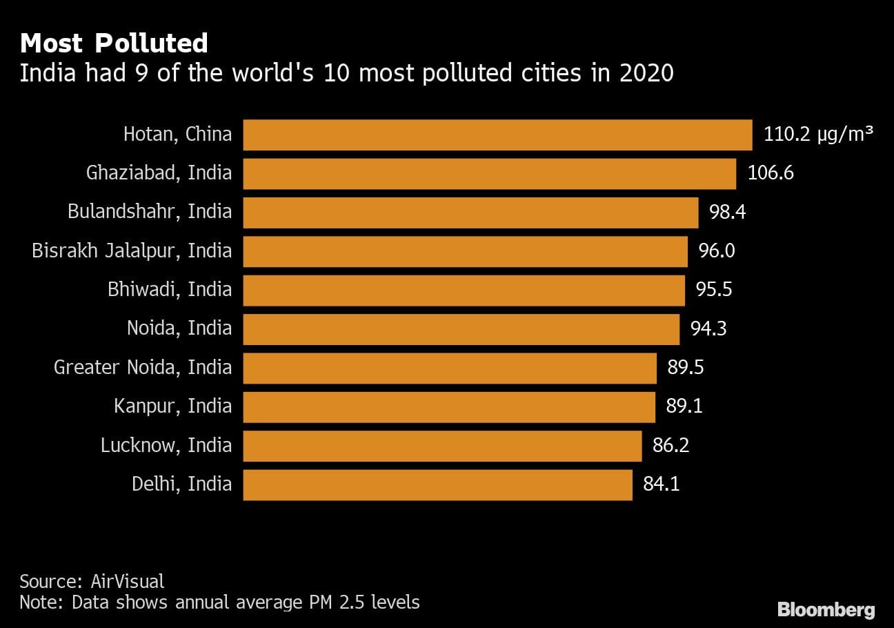 India’s government “should start acting on a war scale,” to hit targets to curb pollution, authors Shivansh Ghildiyal and Sunil Dahiya said in the report. “Stringent actions should be implemented across sectors to reduce emission loads.”