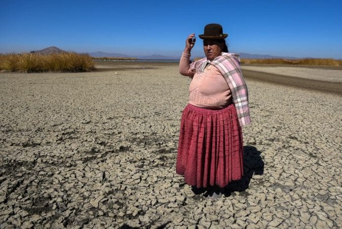 Like many places suffering deadly consequences of climate change, the sprawling freshwater lake nestled in the Andes mountains on Bolivia’s border with Peru now features a water level approaching an all-time low.